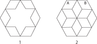 Представьте, что ваш предмет – живой, динамичный организм, который постоянно эволюционирует во что-то новое. На иллюстрации фигура из рисунка 1 превращается на рисунке 2 в нечто вроде цветка. Если долго вглядываться в рисунок 2, можно в конце концов обнаружить, что его реально представить в виде трех кубов, где верхняя грань верхнего куба отмечена буквой А. Если продолжить всматриваться, можно увидеть другие три куба: верхняя грань верхнего куба отмечается буквой В. Предмет неожиданно сам себя пересобирает в совершенно другую форму, при этом ничего не прибавляется и не убавляется.