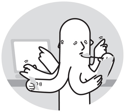 Не сомневаюсь, что вы знакомы с понятием «многозадачность». Буквально он означает выполнение нескольких задач одновременно. Как у вас с многозадачностью? Большинство думают, что у них хорошо получается, но исследования показывают, что это общее заблуждение. Предполагается, что многозадачность позволяет быстрее выполнять поставленные задачи. Если на одну задачу требуется одна минута и на другую – одна минута, благодаря многозадачности можно обе выполнить в два раза быстрее, чем при последовательном выполнении. Кажется правдоподобным, но верно как раз обратное. Многозадачность требует больше времени и приводит к большему количеству ошибок. Одни плюс один не равно один, скорее один плюс один будет равно как минимум четыре. Пытаясь выполнять несколько задач одновременно, вы допускаете больше ошибок в каждой задаче. Таково было заключение пятилетнего сравнительного изучения 600 научных статей на эту тему и подробного исследования, проведенного среди 1200 специалистов{14}. Поразительно, с учетом того, что мы часто увлекаемся многозадачностью. У нас на компьютере одновременно открыты несколько программ и окон браузера, между задачами мы просматриваем Twitter, LinkedIn или пару новых сайтов и при этом не в состоянии удержаться от регулярной проверки сообщений на своем телефоне.