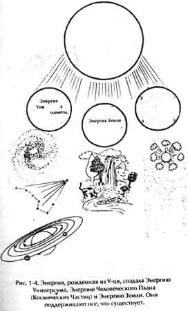 Энергия Универсума сконцентрирована на нашей планете, что связано с особыми отношениями между Землей и Луной. Объединенные силы Земли и Луны создают мощное магнитное притяжение, привлекающее энергию звезд нашей галактики. Эта сила спускается по спирали вниз и наполняет энергией наши тела, умы, души и дух (рис. 1-6).
