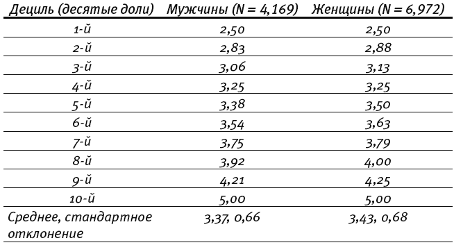 В июле 2004 года этот тест, наряду с огромным количеством других, прошли 1218 человек, поступавших в Военную академию США. В армии разработано множество психологических тестов – военные очень серьезно относятся к прогнозированию достижений с их помощью. Интересно, что тест на упорство, похоже, уникален в своем роде, поскольку не коррелирует с «оценкой кандидата в целом»: с суммой баллов отборочного экзамена, рейтинга потенциального лидера и физической подготовки. Он позволял точнее, чем все тесты по отдельности и вместе, предсказать, кто из студентов до конца выдержит изнурительную летнюю подготовку (ее называли «зверские казармы»), а кто не справится с ней. Тест на упорство также предсказывал средние оценки по образовательным предметам и боевой подготовке, но эту задачу, причем не хуже, решали и традиционные тесты. На самом деле краткий опросник самоконтроля (менее экстремальная версия теста на упорство) опережал его по точности прогнозирования средних оценок учащихся. В 2006 году Анджела провела это исследование в Вест-Пойнте еще раз и обнаружила, что тест предсказывает стабильность в подразделениях сил специального назначения так же, как и в объемах продаж недвижимости.