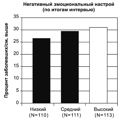 Отмечено также некоторое влияние негативных эмоций, когда люди с низким их уровнем заболевают реже остальных. Важно однако то, что явной движущей силой являются не негативные, а позитивные эмоции.