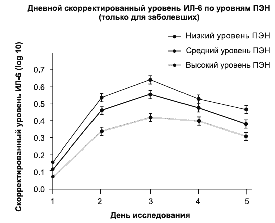 Чем сильнее выражен позитивный эмоциональный настрой (ПЭН), тем ниже уровень интерлейкина-6 (ИЛ-6) {24} и, соответственно, меньше воспаление: