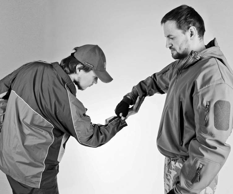 Важно – для более эффективного проведения болевого приема надо вытянуть руку противника к себе. Если же его рука будет прижата к корпусу, вам будет труднее, а ему легче (фото 11, 12).