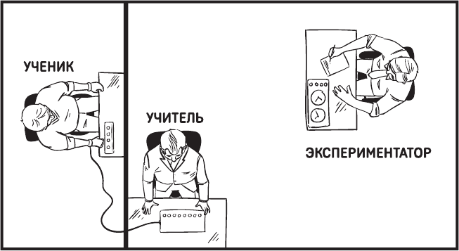 Подопытные в эксперименте Милгрэма – обычные люди, участвовавшие в исследовании за небольшую плату[9], – назывались «учителями». Их задача состояла в том, чтобы отслеживать ошибки «учеников» и наказывать их разрядами электрического тока, когда те не справляются с заданием.