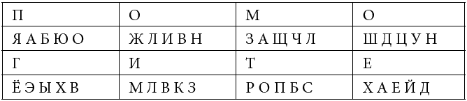 30. Нужно взять буквы, стоящие в алфавите вслед за последними буквами каждой из групп (табл. 2).