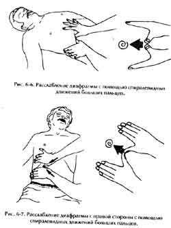 1. Для того чтобы расслабить диафрагму, массируйте ее обеими руками, производя спиралевидные движения (рис. 6-10).