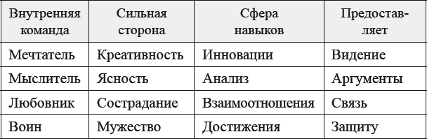 Ваш внутренний Капитан координирует действия Мечтателя, Мыслителя, Любовника и Воина. Кроме того, и это самое важное, Капитан понимает, что у всех членов Большой четверки есть собственные интересы и приоритеты. Каждый из них представляет какую-то часть вас, которая заботится об удовлетворении ваших потребностей. Но они ценят не одни и те же вещи и по-разному воспринимают то, что вам нужно. Любовник стремится удовлетворить тягу к созданию взаимоотношений. Воин – обеспечить потребность защищать и достигать. Каждый внутренний переговорщик становится жертвой того, что заметила писательница Анаис Нин: «Мы видим мир не таким, какой он есть, а таким, какие мы сами».