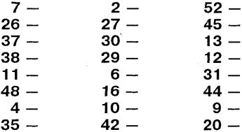 Если вы потренируетесь еще в запоминании десяти четырехзначных чисел и будете выполнять это задание без ошибок, то можете попробовать запомнить таким же способом десять шестизначных чисел, что при демонстрации чудес вашей памяти выглядит еще эффектнее. В этом случае разбивайте шестизначные числа на три двузначных (если сможете разбивайте шестизначные числа на два трехзначных числа). В остальном алгоритм действий тот же.