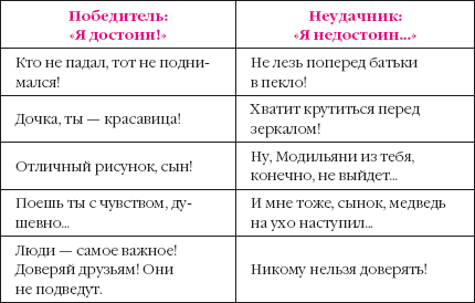 Таблица показывает, как своими словами мы формируем неудачников или растим победителей.