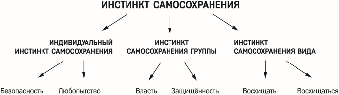 • индивидуальный инстинкт самосохранения (желание безопасности и любопытства),
