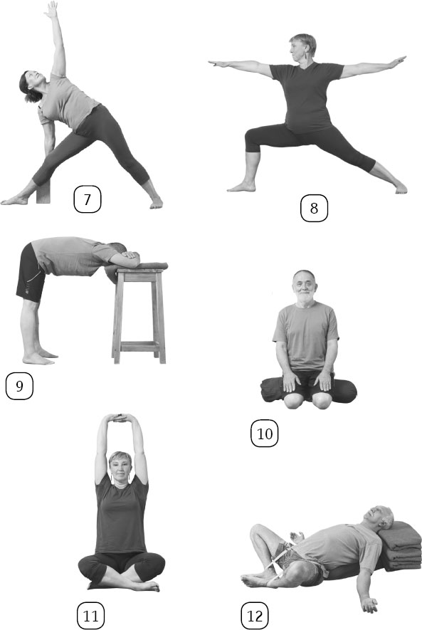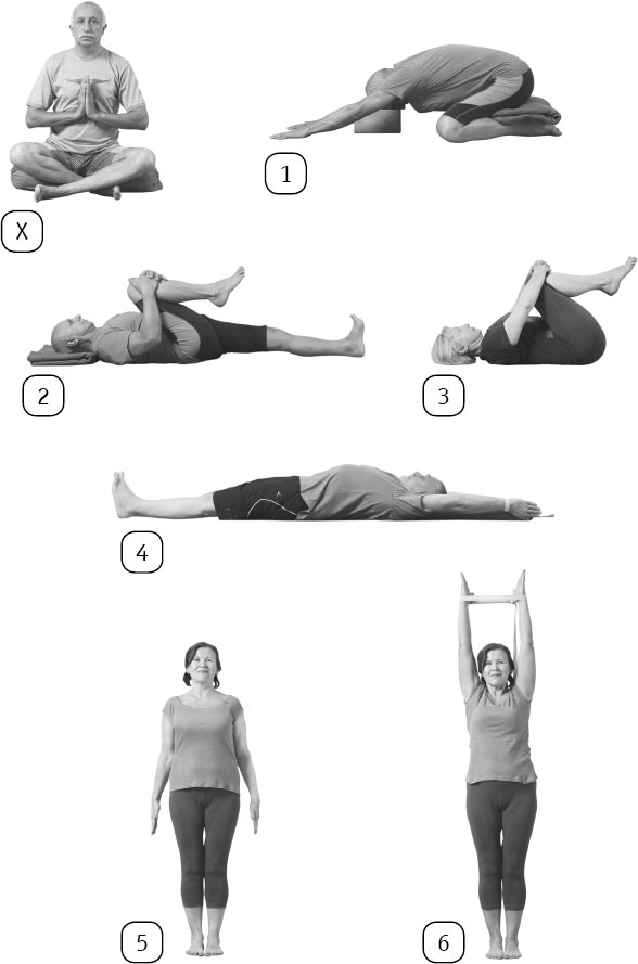 Программа комплекса включает в себя позы лежа, стоя, сидя, а также асаны для глубокого расслабления и накопления сил. Последовательность из 15 поз займет у вас около 40 минут. Если у вас больше свободного времени, останьтесь подольше в позах для отдыха (начиная с № 12).