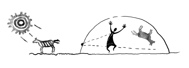 Индейцы снимали шкуры с убитых животных и раскладывали их сушиться на солнце. Но кожа под солнцем съеживалась, усыхала в два раза и становилась толще. Это совсем не устраивало индейцев. Тогда они нарезали специальные кожаные ремешки, чтобы с их помощью растягивать шкуры в специальных деревянных рамах. Но здесь их ждала другая досадная неприятность: когда они лежали без дела, то тоже усыхали и уменьшались в два раза, приходя в негодность. Для исправления этого неудобства кто-то из индейцев взял кожаную полоску и растянул ее на палке. Каково же было его удивление, когда спустя время он обнаружил, что из-за усыхания кожаного ремешка палка согнулась в дугу. Оставалось только приставить палку поменьше и дернуть за натянутый кожаный ремешок, чтобы понять, что появилось оружие для стрельбы на дальние расстояния. Так на отдельно взятом континенте появились лук и стрелы.