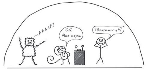 Это панический монстр — персонаж, появляющийся в те моменты, когда что-то начинает серьезно угрожать нашей безопасности или карьере. Обезьянка его боится. Она покидает насиженное место и сваливает, оставляя у руля рационального типа.