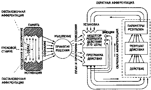 Ну а если серьёзно, то перед вами схематичное изображение того, что называется «теорией функциональных систем» Петра Кузьмича Анохина – выдающегося нашего соотечественника, нейрофизиолога, академика.