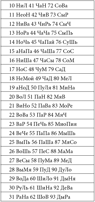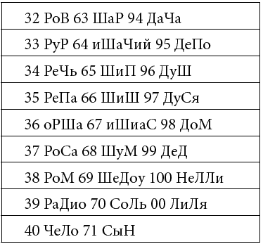 Выберем в названии цифры ключевую букву (см. табл. 17). Запомним ее и придумаем с этой буквой простое, односложное слово.