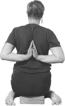 • Если вы чувствуете боль в плечах и не можете соединить ладони, захватите руки за спиной над локтями. Чтобы плечевые суставы разрабатывались постепенно, можно захватывать одной рукой запястье другой и немного тянуть руки назад, за спину, освобождая плечи.