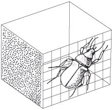 На рисунке ниже таракан находится вне куба. Если посмотреть на рисунок под другим углом, можно увидеть, что таракан внутри куба, на полу. Если посмотреть на пересечение линий внутри куба, то через некоторое время куб вывернется наизнанку, и таракан окажется внутри и на полу. Изменение перспективы, немного другой взгляд на вещи создает совершенно иное изображение.
