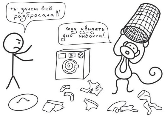 Мораль такова: хорошо, когда ты ясно понимаешь, что именно откладываешь на потом. Как следствие, время от времени нужно обрабатывать все содержимое инбокса. В некоторых случаях это может оказаться весьма сложным делом, и тогда придется применить какие-нибудь хитрости. Например, метод экономии масштаба (см. «Джедайские техники», раздел 5.1) или вероятностные методы. Скажем, установить фильтр на какой-то класс сообщений, чтобы сразу удалять их. С одной стороны, это повышает вероятность пропустить что-то важное в сообщениях этого класса, а с другой стороны — повышает вероятность уделить должное внимание прочим входящим — тут уж никаких гарантий, одни вероятности.