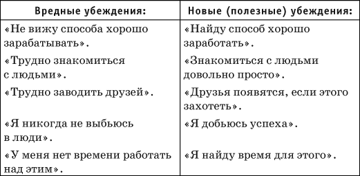 Шаг 2. Рядом с каждым вредным убеждением напишите новое, позитивное. Например: