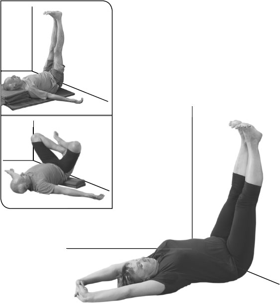 Использование пола как опоры под затылком и спиной, а также стены как опоры для ног дает возможность без всякого усилия вытягивать ноги и спину. Здесь вытяжение сочетается с глубоким расслаблением.
