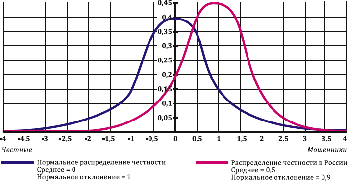 При этом стоит заметить, что россиянам вообще свойственен максимализм: «гулять – так гулять, стрелять – так стрелять», или, как указывал Салтыков-Щедрин: «У нас нет середины: либо в рыло, либо ручку пожалуйте!»[151] Это означает, что так называемые «хвосты» нормального распределения в России больше, чем в остальном мире.