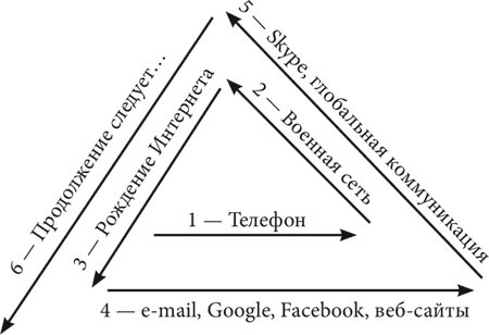 5. Вторая сторона нового треугольника – расширение интернет-коммуникации, появление видеосвязи, видеоконференций. Например, моя четырехлетняя дочь считает, что видеть бабушку во время разговора – вполне обычно и нормально.