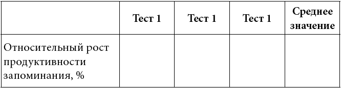 Допустим, средняя продуктивность запоминания в вводном тесте (А) равнялась 50 %, а в заключительном (Б) – 60 %. Прирост продуктивности запоминания (В) составит тогда