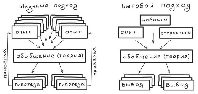 Рис. 41. Роль опыта и теории в научном и бытовом подходах