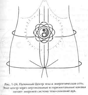 Сочетание всех этих каналов образует энергетическую сеть тела. Эта сеть достаточно обширна для того, чтобы направлять энергию туда, где она необходима. Чтобы обеспечить свободное прохождение чистой энергии, поступающей из энергетического центра, крайне важно, чтобы брюшная полость всегда была чистой (рис. 1-24).