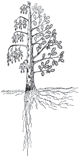 в земле – в виде поверхностных корней, которые олицетворяют основное предназначение мужчины в семье – обеспечение материального достатка.