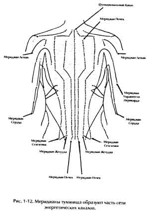 По Функциональному Каналу движется энергия Инъ-ци (Земная Энергия). Этот канал помогает направить вниз идущую с неба энергию Ян и соединить ее с энергией Инь. Канал проходит спереди по поверхности тела, начиная от промежности до кончика языка (рис. 1-13). Когда в процессе Микрокосмической Орбитальной Медитации этот капал открывается, направление потока в нем изменяется на противоположное - вниз по передней части тела, как это происходило в утробе матери. Таким образом даосы учатся восстанавливать свою пренаталыную энергию. Функциональный Канал, который иногда называют Океаном энергии Инь, может питать своей комбинированной энергией все шесть каналов Инь, которые подсоединяются к нему. Эти каналы управляют зародышем и менструальным циклом.