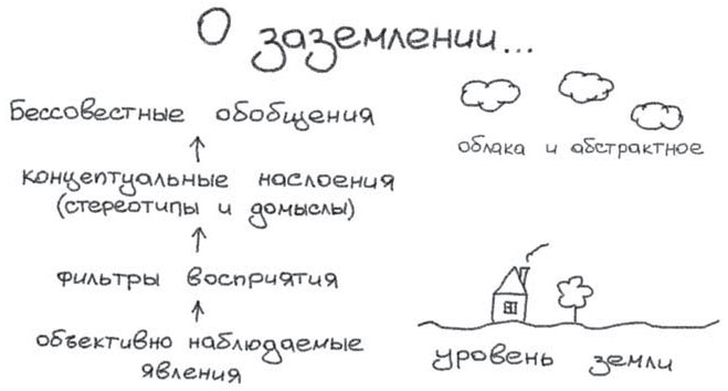 На картинке ниже схематично представлены несколько степеней отрыва от земли. Существует уровень объективно наблюдаемых явлений и процессов. Зачастую он нам недоступен, и мы можем заметить и осознать лишь какую-то его часть (уровень фильтров восприятия). Дальше на то, что мы заметили и осознали, наслаиваются дополнительные смыслы. Какие-то — обоснованно, какие-то — лишь благодаря устоявшимся стереотипам и заблуждениям. Уже на этом уровне мы можем «приукрасить» картину по разным причинам: где-то из-за нетерпимости к слепым пятнам и непонятному, где-то просто по привычке, где-то — желая хоть как-то использовать имеющееся у нас знание. Но кто-то может пойти и дальше, обобщая и упрощая все до безобразия…