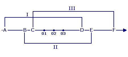 На участке CD перекрываются три аспекта. На участке A01 сходится I аспект, на участке B02 сходится II аспект, а на участке C03 - III аспект. Следовательно, на отрезке С01 все три аспекта являются сходящимися, поэтому именно здесь реализация данного события должна быть максимальной.