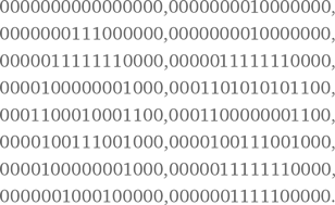 Здесь 0 означает белый пиксел, а 1 — черный пиксел. Мы создаем изображения, продвигаясь по линиям сверху вниз и быстро устанавливая значение пикселов.