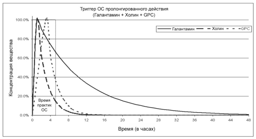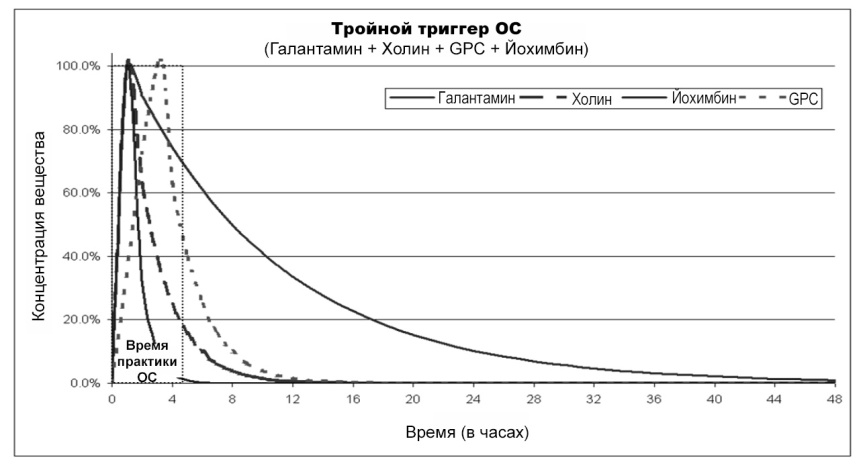 Кривая концентрации "Тройной триггер ОС" (Галантамин + Холин + Йохимбин + GPC).