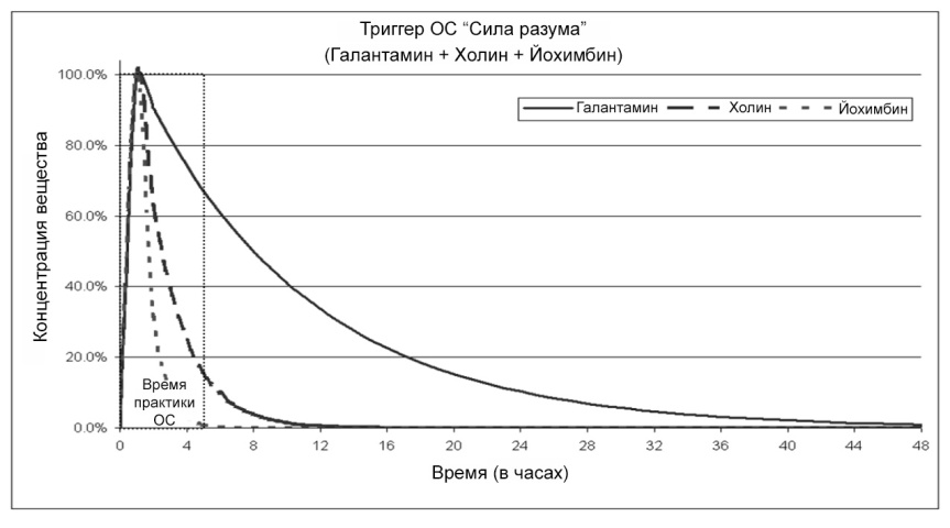 Кривая концентрации триггера "Сила разума" (Галантамин + Холин + Йохимбин).