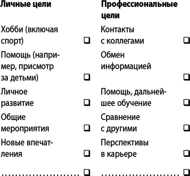Контакты к тому же могут облегчать вам жизнь. Например, можно передать кому-то проект, который выходит за рамки вашей компетенции. Можно организовать совместный присмотр за детьми. Круг общения также предлагает много способов проведения свободного времени: от игры в гольф до скалолазания, от путешествий до вечеров у камина и совместного приготовления обеда. Хорошо организованный круг общения приносит пользу всем его участникам.