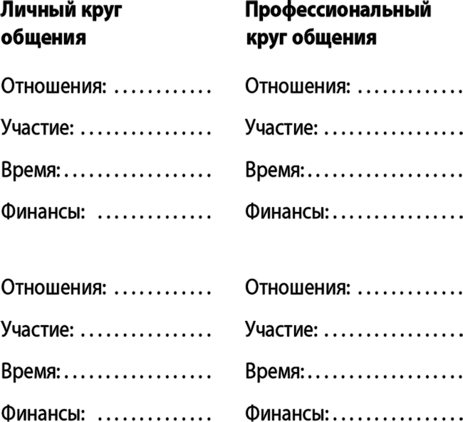 При этом учитывайте те приоритеты, которые вы выделили выше (вопрос 2 под стратегией 1): чем важнее круг общения, тем больше ресурсов вам следовало бы на него потратить.