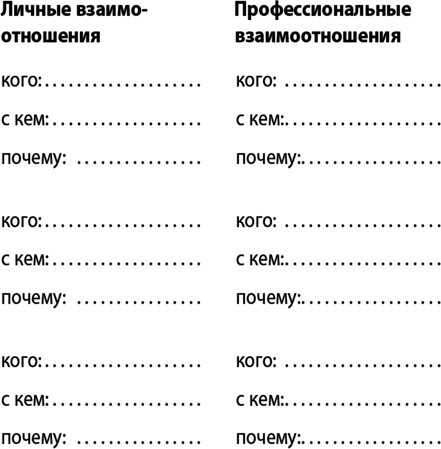Теперь попробуйте составить список очередности. Пронумеруйте те сферы общения, которые вы отметили в каждой колонке согласно степени значимости. Самые значимые личные и профессиональные сферы общения будут под номером 1, следующие под номером 2…