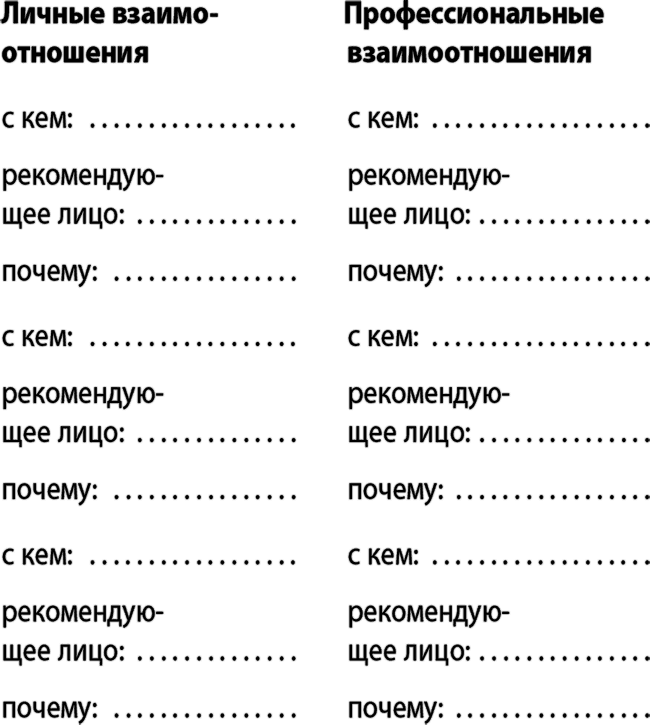 Такие преимущества, как способность к анализу, содержательность и сосредоточенность, помогут вам придерживаться первых двух стратегий и без особого труда преуспеть в налаживании социальных контактов: вы определяете свои ресурсы и, кроме того, решаете, на что вам их тратить в первую очередь. Если вы перестроите свои планы, вам, возможно, придется пересмотреть и свои приоритеты, либо ресурсы вы распределите иначе, чем планировали. И то и другое вполне естественно. Главное – у вас теперь есть продуманный вами образцовый план, который дает вам стимул для дальнейших шагов в собственном управлении контактами.