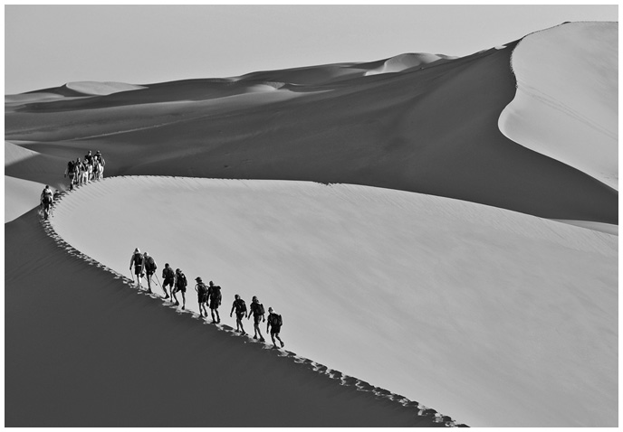 Нам предстоял трекинг на 75 миль по песчаным дюнам. Команда Salomon / Crested Butte быстро вырвалась вперед: мы горели желанием задействовать свой большой беговой опыт и использовать преимущества высотных тренировок. Только вот куда именно надо бежать? В шоссейных гонках обычно бывают указатели направления, отметки расстояния. Но не здесь. Моя команда рассчитывала, что я покажу им верное направление. Мы бежали, скользили вниз и вновь лезли вверх, и мне нужно было на ходу ориентироваться в незнакомой местности, на которую не дали надежных карт, потому что дюны все время находятся в движении. В других гонках я мог использовать как ориентиры горы, долины, реки и границы растительности. Здесь же, куда ни кинешь взор, лишь бескрайнее море песка, меняющееся от каждого дуновения ветра. Условия были, мягко говоря, сложными, но я чувствовал упоение от того, насколько бег по глубокому песку похож на бег по снегу. Я повторял про себя: «Трэв, ты играешь на своем поле». И это работало.