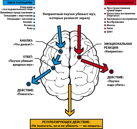 Если человек включает два полушария, то результирующее действие обычно такое: «не помогать, но и не убивать – не мешать».