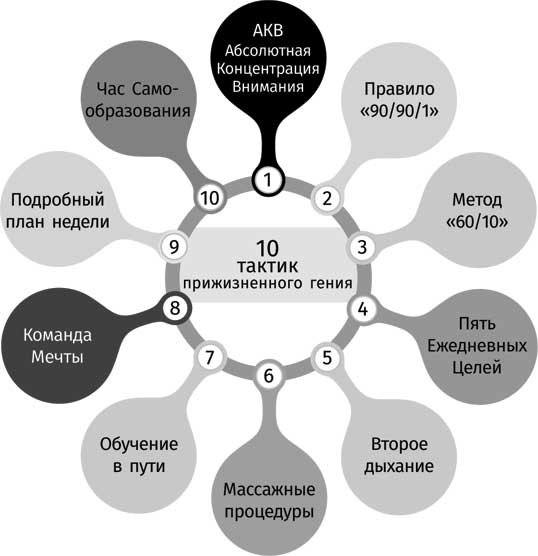 – Словом, я хочу, чтобы вы ни о чем не думали и сосредоточились исключительно на практиках клуба «Пяти Утра», – продолжил он как ни в чем не бывало. – Сегодня я хотел бы поговорить с вами о десяти тактиках, которые придадут мощное ускорение всем вашим делам. Десять маленьких ежедневных подвигов. Совершайте их – и вы станете Героями с большой буквы. Я и сейчас могу гордиться вами: вы состоите в клубе «Пяти Утра» очень непродолжительное время, но столь успешно применяете формулу «20/20/20», что уже показываете результаты, которые сделали бы честь лучшим членам нашего клуба. Десять ежедневных тактик позволят вам выйти на постоянную орбиту успеха и не терять высоту ни при каких обстоятельствах.