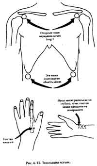 1) Одну руку держите на точке легких LU-1 (Lung-1), которая находится на грудной клетке (рис. 6-12), в то же время массируя другой рукой область легких, как показано на схеме Ци РЫщзан, приведенной на рис. 6-13. Точки массируются с обеих сторон, начиная слева.